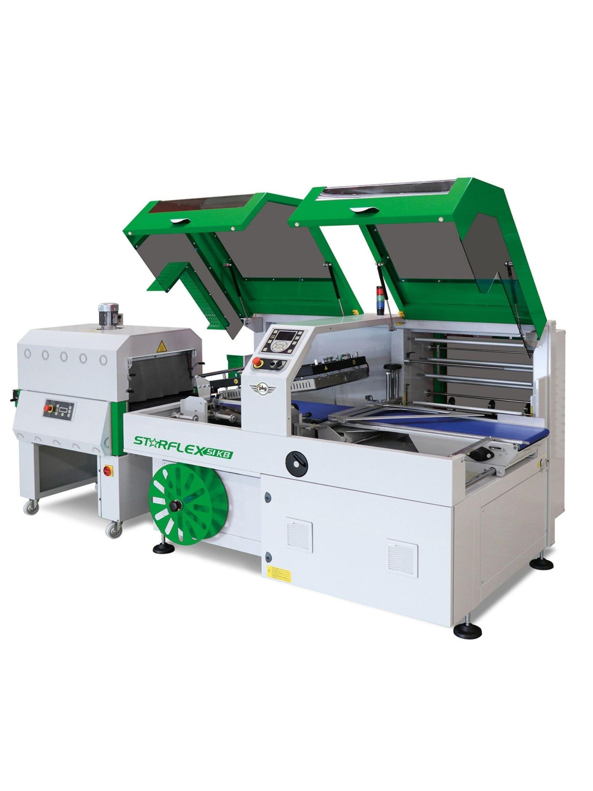 Conditionneuse angulaire automatique sous film thermorétractable dossé.