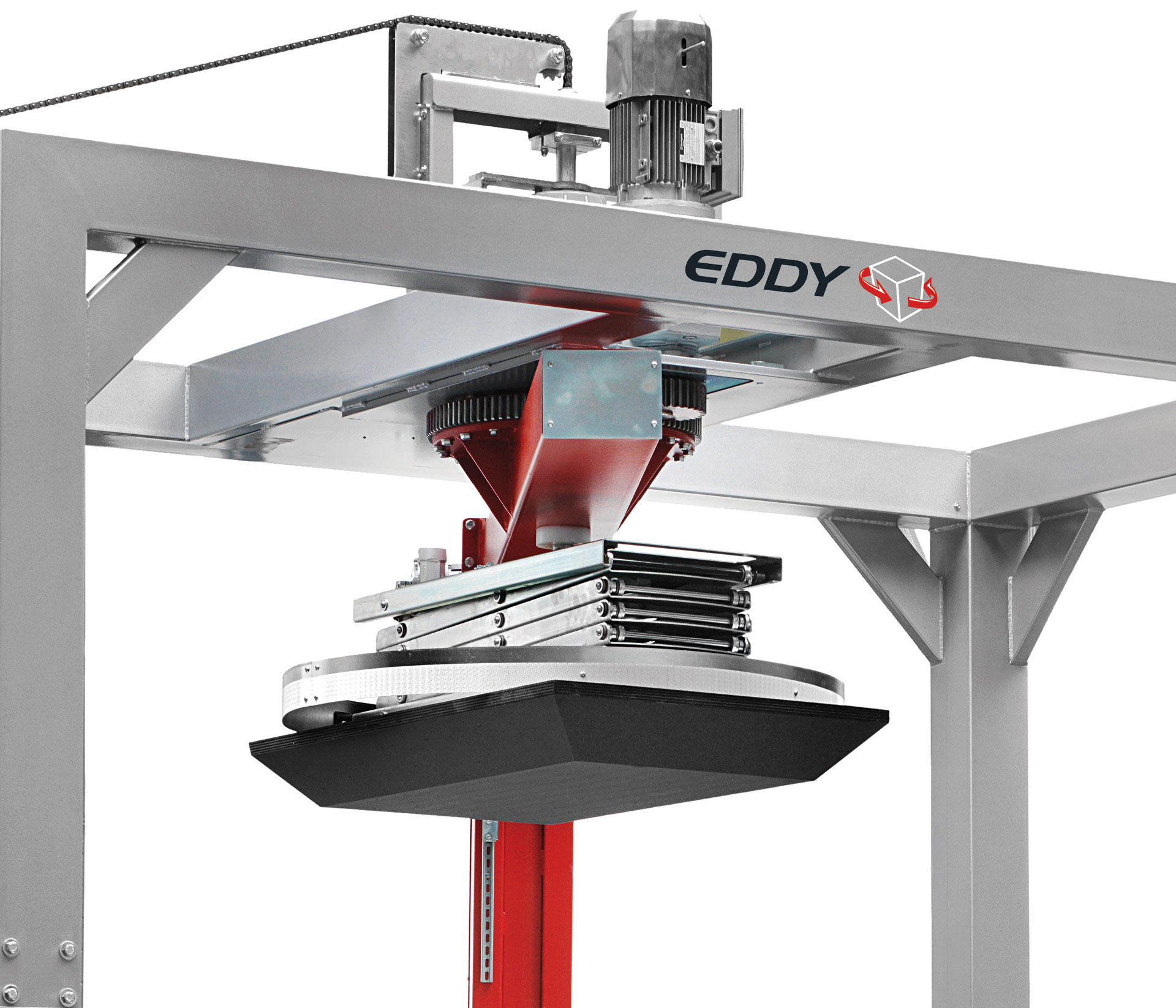 Eddy – это упаковочная машина в растягивающуюся пленку с поворотной консолью, наилучшее решение для обмотки поддонов в растягивающуюся пленку.